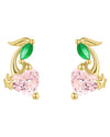 Kolczyki złote ozdobne różowe wisienki SREBRO 925