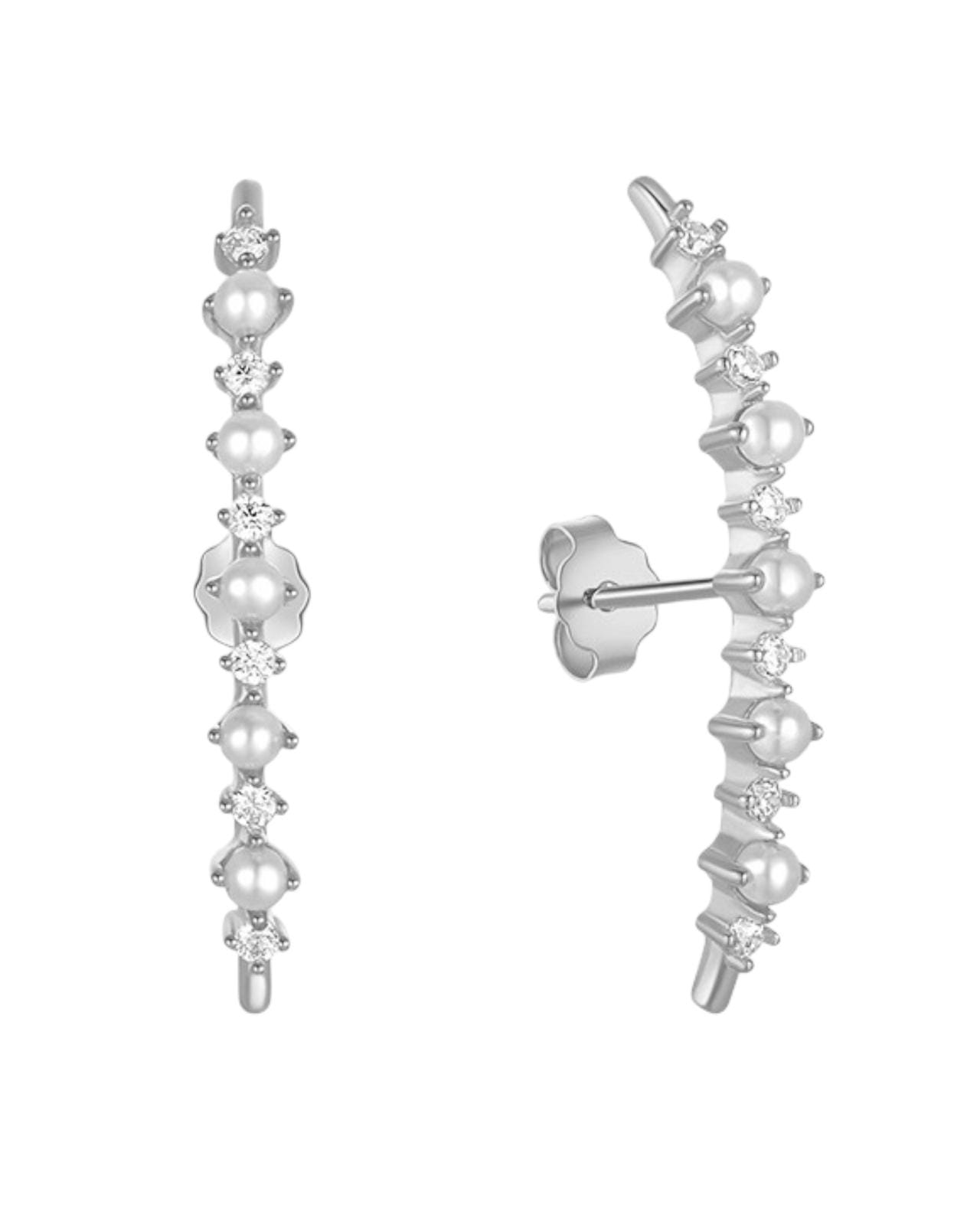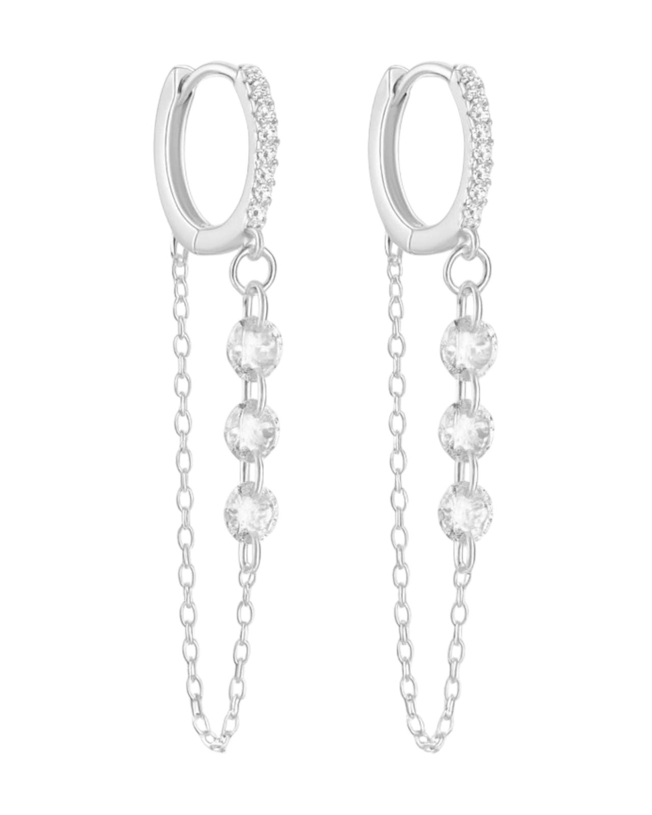 Kolczyki typu clicker srebrne z ozdobnymi łańcuszkami - SREBRO 925