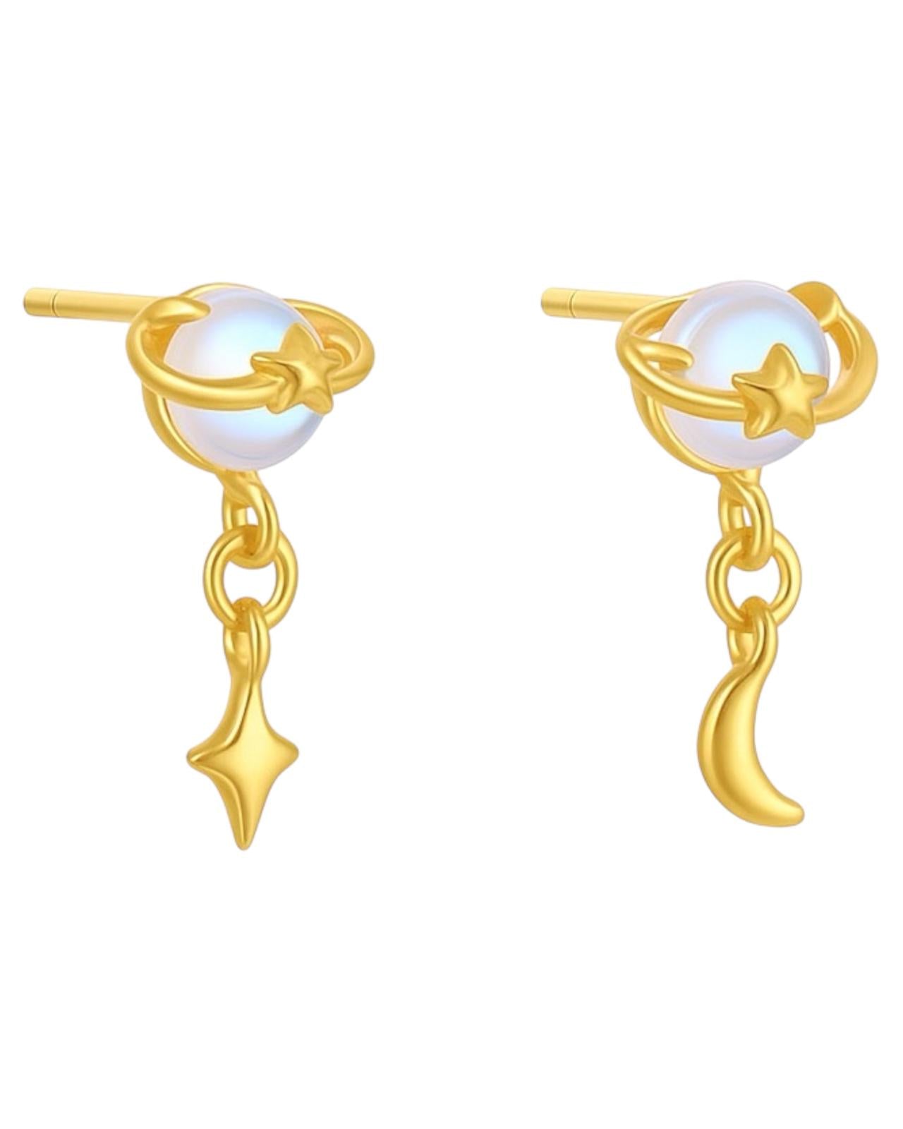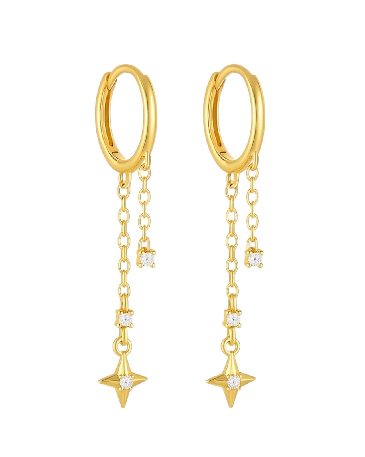 Kolczyki typu clicker złote z ozdobnymi łańcuszkami - SREBRO 925