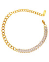 Subtelna, a jednocześnie olśniewająca. Ta złota bransoletka łączy w sobie klasyczny łańcuszek z rzędem perfekcyjnie szlifowanych cyrkonii, które odbijają światło niczym diamenty. Idealna dla kobiet, które cenią prostotę z nutą luksusu. Doskonała do wieczorowych stylizacji, ale także jako delikatny akcent na co dzień.